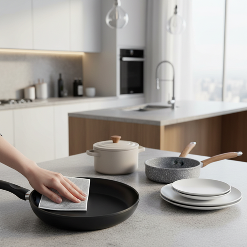 ▢ سهل الشطف وما يمسك الدهون، ينظف بسرعة ويرجع جاهز للاستخدام.