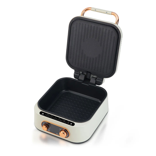 🔄 يمكن تسطيح طبق الطهي بزاوية 180 درجة لتوفير مساحة أكبر وتقليل وقت الطهي للنصف