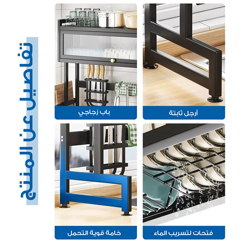 ✅ توزيع ذكي: مكان للملاعق، الصحون، التوابل، الصابون، السكاكين والقدور